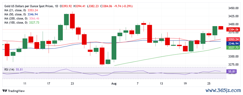 周三(8月27日)亚市盘中,现货黄金在上一交游日大涨后权臣下滑,当今金价位于3374好意思元/盎司隔邻,日内重挫近20好意思元。FXStreet高等分析师Dhwani Mehta撰文,对金价技能走势进行分析。